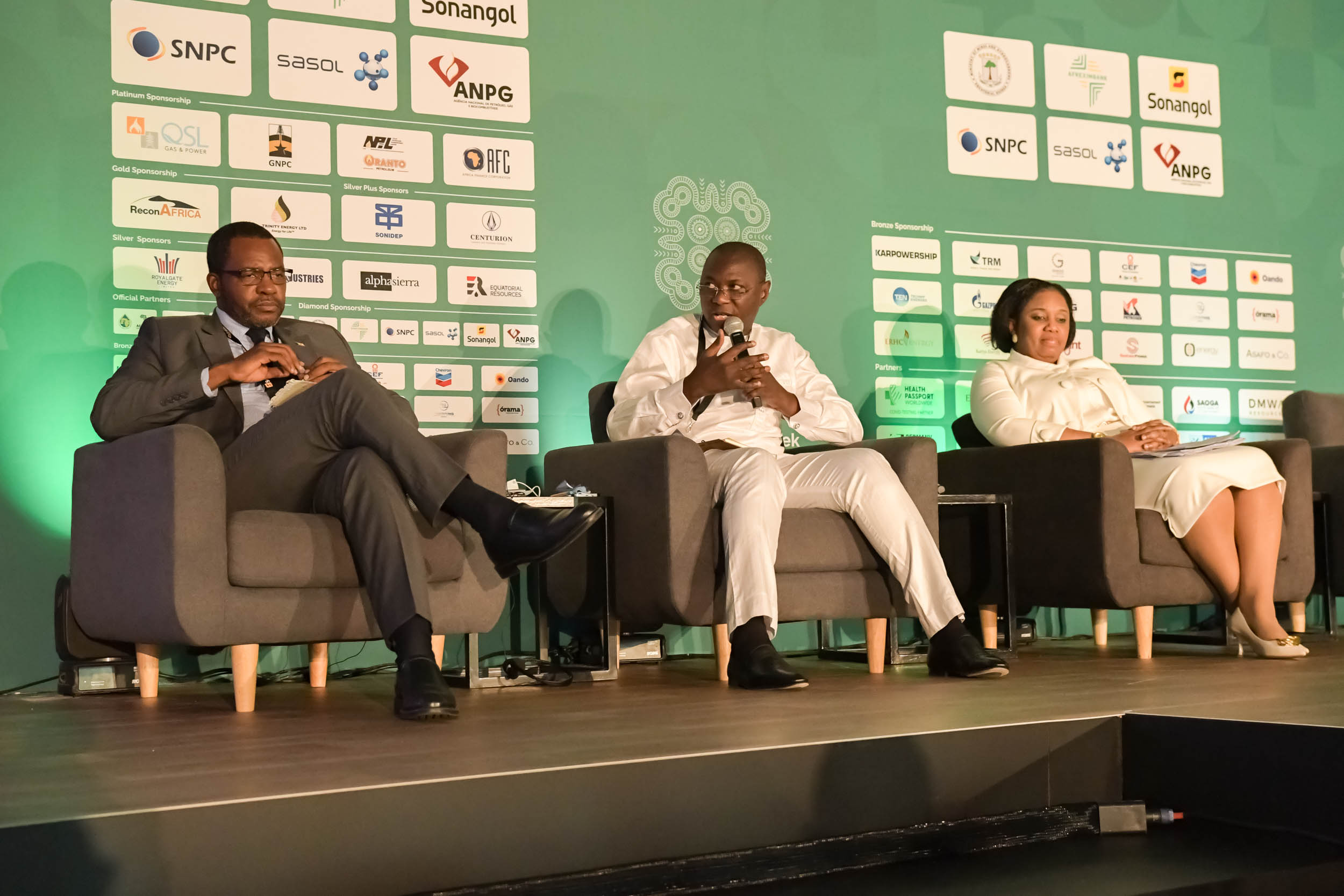 - H.E. Gabriel Mbaga Obiang Lima, Minister of Mines and Hydrocarbons of Equatorial Guinea; Hon. Dr. Mohammed Amin Adam, Deputy Minister of Energy of Ghana; and Irene Etiobhio, Senior Petroleum Industry Analyst at the Organization of Petroleum Exporting Countries, in Cape Town.