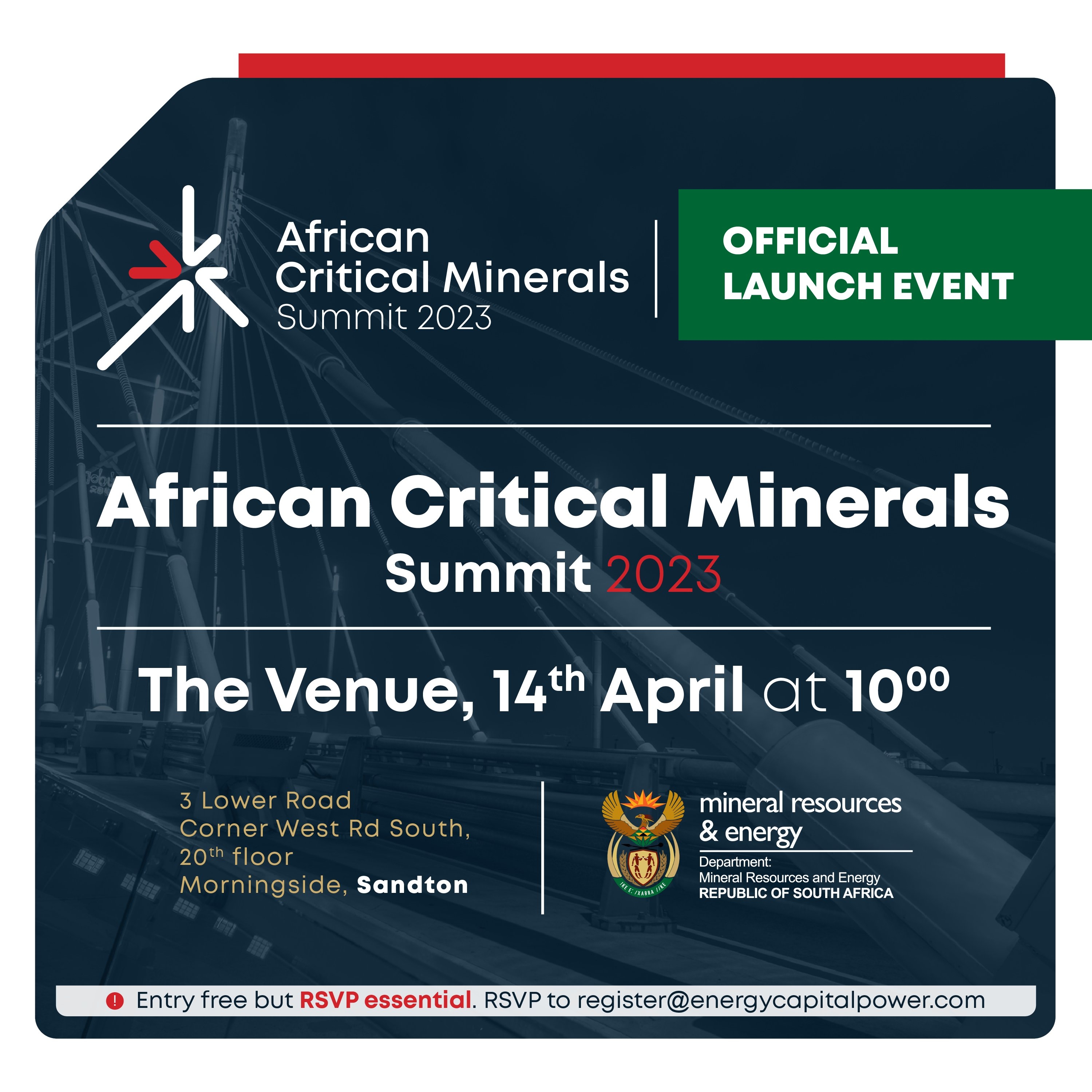 Back To Press Release First Ever African Critical Minerals Summit Launching in Johannesburg All (1) Images (1) First Ever African Critical Minerals Summit Launching in Johannesburg (Source: Energy Capital & Power | 2 years ago) Share Download HD Download SD Image
