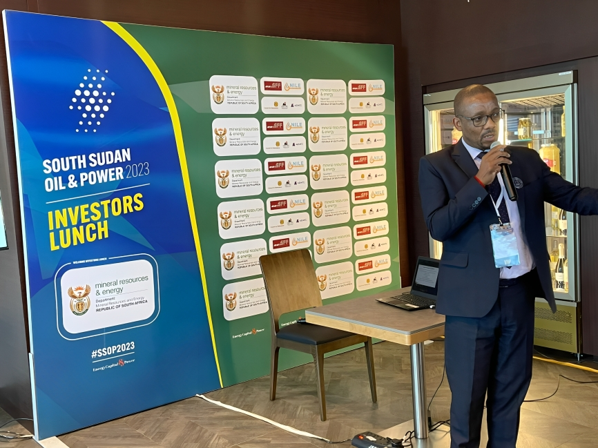 Back To Press Release South Sudan, South Africa Gear Up for Mining Sector Collaboration All (1) Images (1) Moroasereme Ntsoane, General Manager of Corporate Strategy & Planning for AEMFC during South Sudan Oil & Power 2023 (Source: Energy Capital & Power | 2 years ago) Share Download HD Download SD Image
